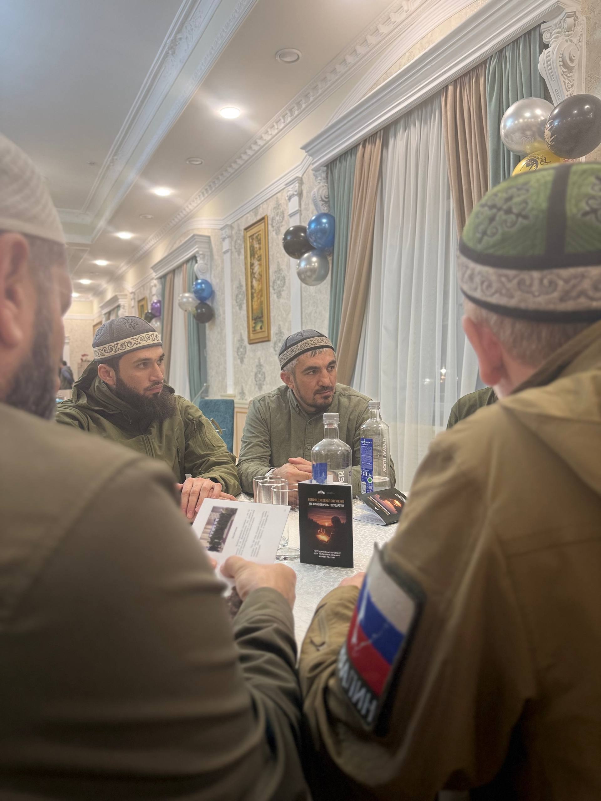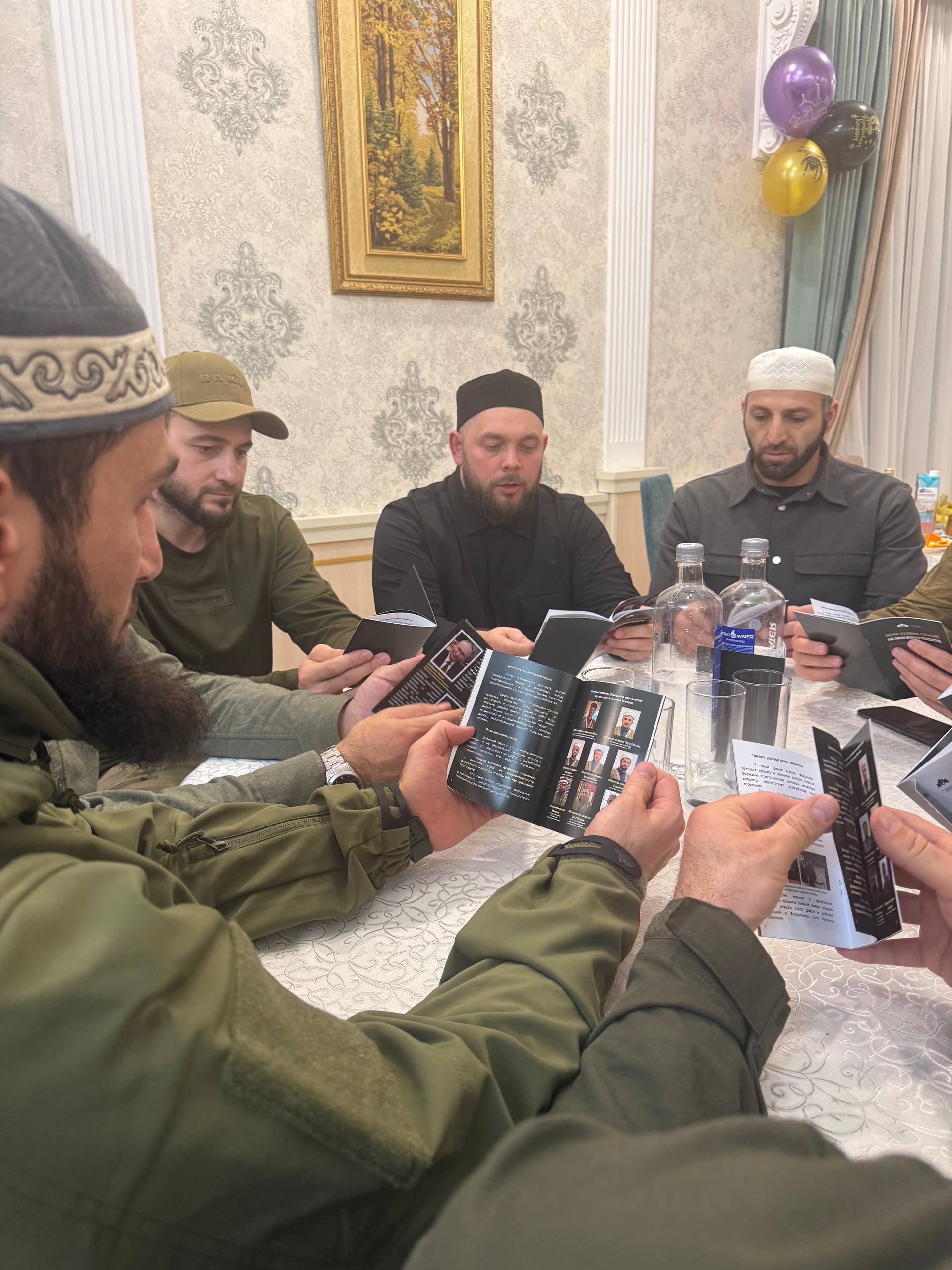 На встрече он представил методическое пособие для полковых имамов «Военно-духовное служение как линия обороны государства». Книга подготовлена совместно с аппаратом полномочного представительства президента в ДФО. Экземпляры передали имамам с поручением распространить пособие в воинских частях.