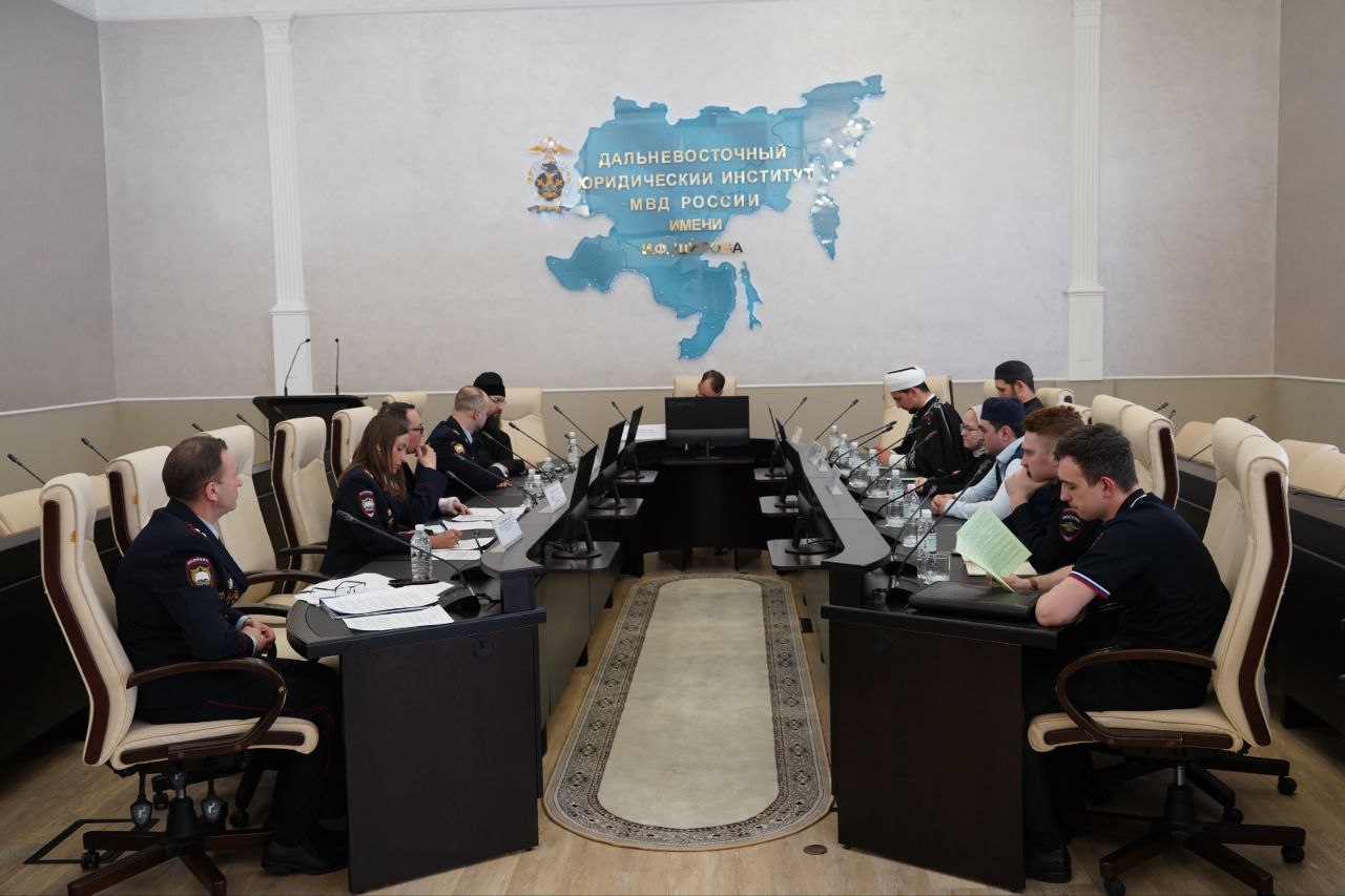 В Хабаровске прошел всероссийский Круглый стол (в режиме видеоконференции), организованный Дальневосточным юридическим институтом МВД России имени И.Ф. Шилова. В мероприятии приняли участие служители Духовного управления мусульман Дальнего Востока, а также представители научно-педагогического состава юридических институтов, священнослужитель православной церкви, адьюнкты, студенты и курсанты образовательных организаций.