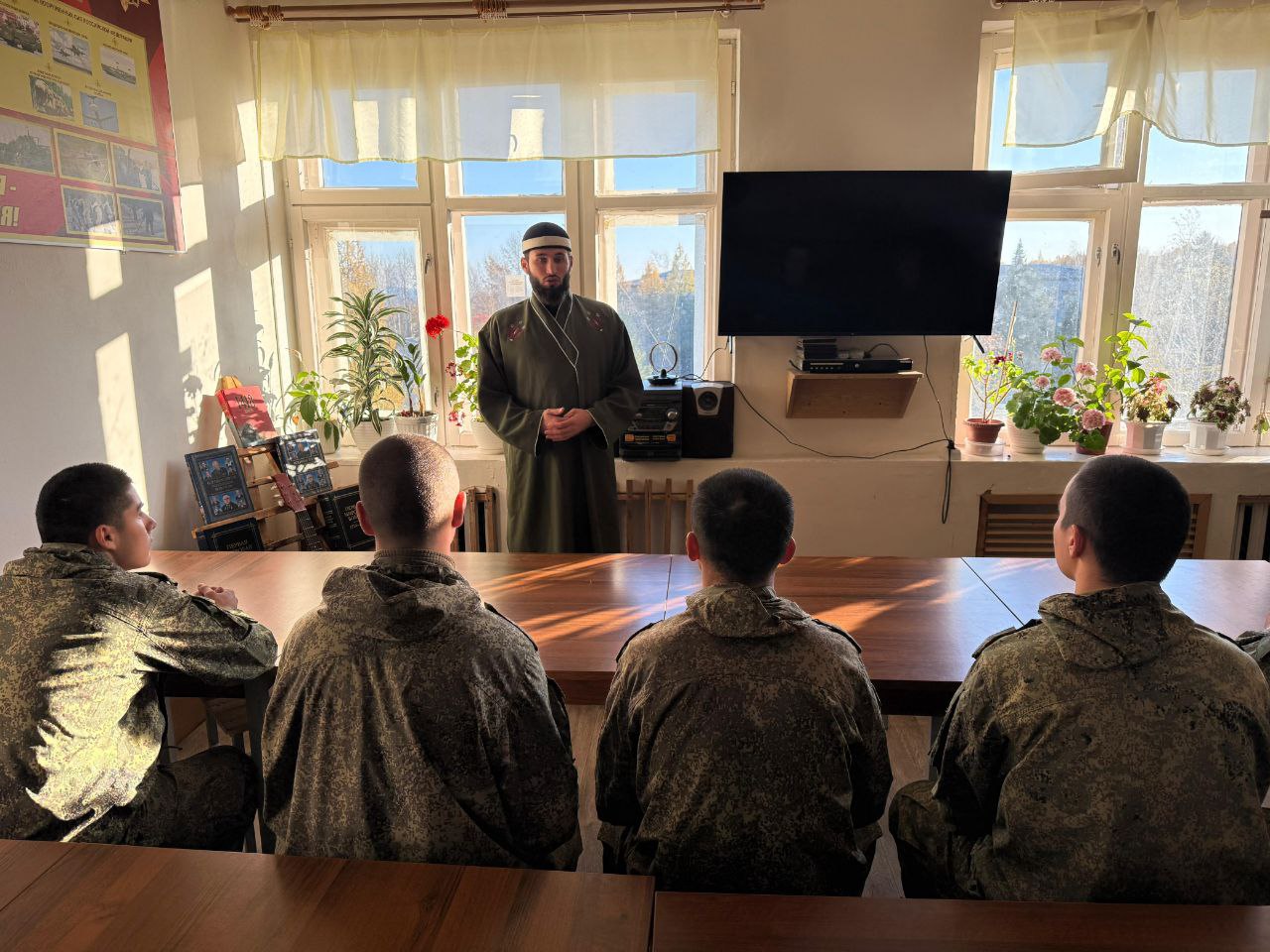 Провел беседу помощник командира 69-й Бригады Мухаммад-хазрат Камалов. Мероприятие было нацелено на укрепление морального духа и нравственных ориентиров защитников Отечества.